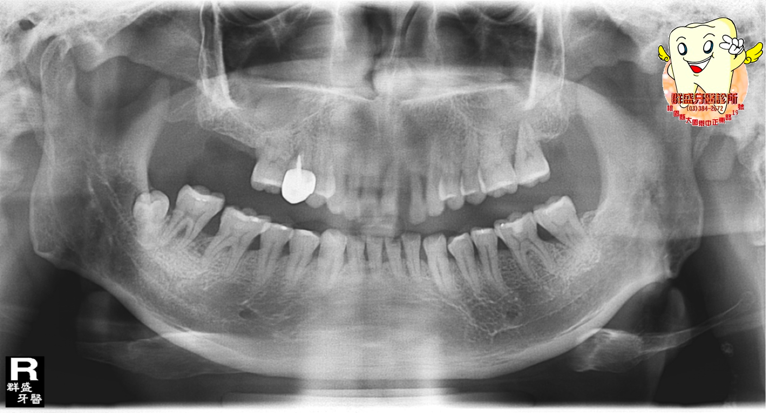 在年輕的時候一次不小心咬到異物造成前牙位移,慢慢的形成了嚴重的牙周病,因為牙根周圍的骨頭已經幾乎全部壞光,
